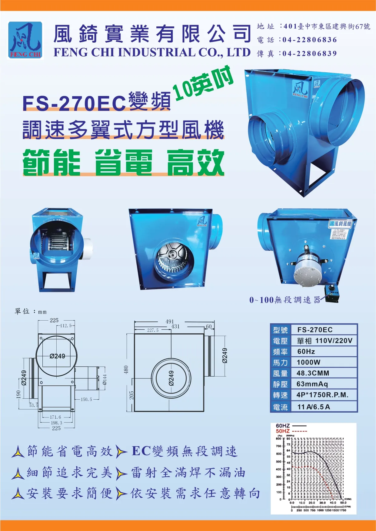 FS-270EC 變頻調速多翼式方型風機